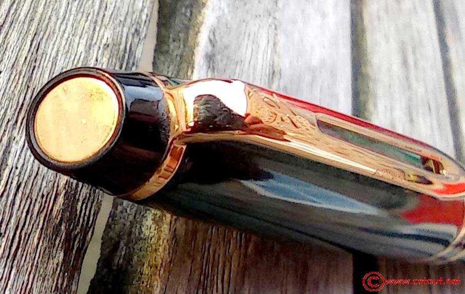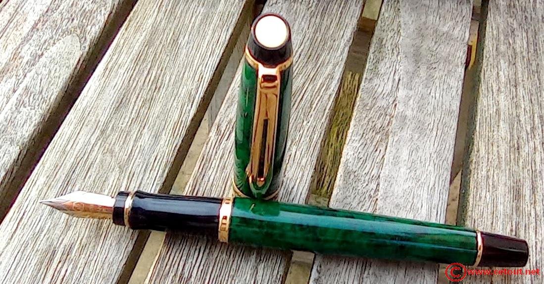 – Capuchon en plastique vert marbré. Excellent état global. Clip large doré.