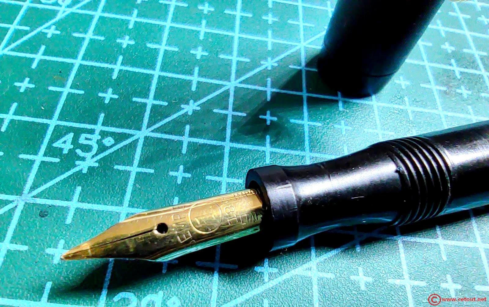 – Bloc plume Ebonite noire. Petite rayure. Plume Or – Taille Fine à moyenne.