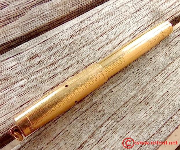 – Corps métal PLAQUE DORE. Capot doré en extrémité. Système a bouton (non restauré)