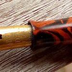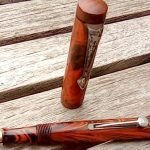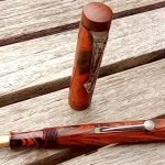 – Capuchon Ebonite woodgrain (assurément non d’origine) avec clip oxydé. Bon état du corps du capuchon et du chapeau.