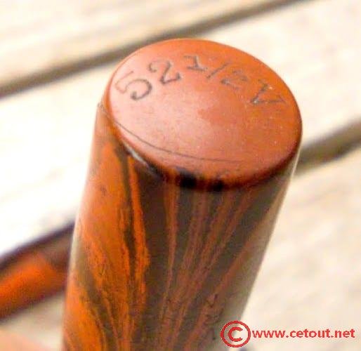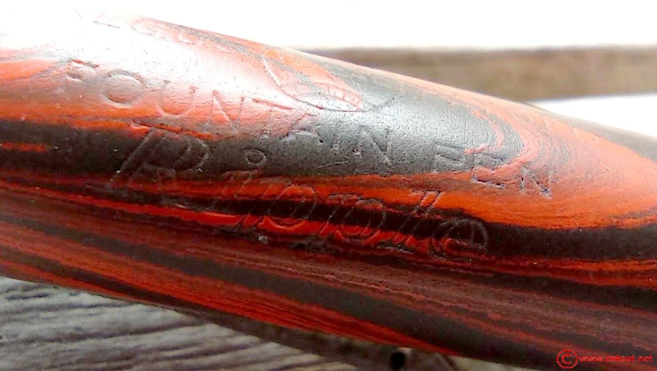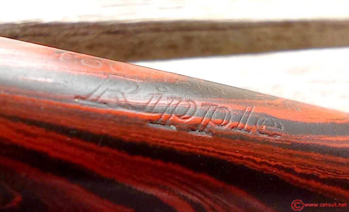 – Corps Ebonite EBONITE Ripple. Numéro 52 1/2V gravé sur l’extrémité. Il est gravé sur le corps :