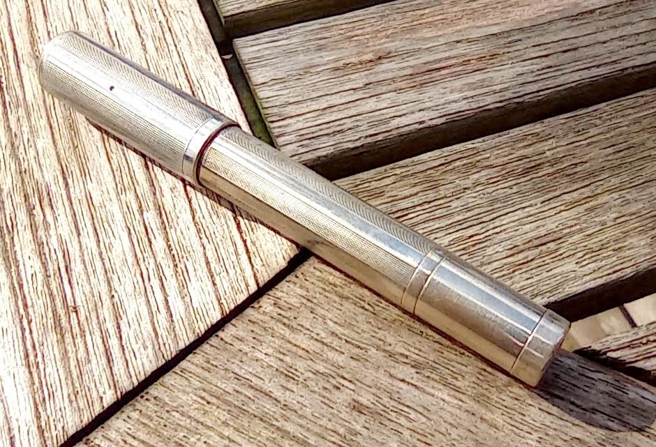 – Corps EBONITE noire avec habillage Métal ARGENT avec poinçons (crabe) . Bague ARGENT en extrémité (Système à molette)