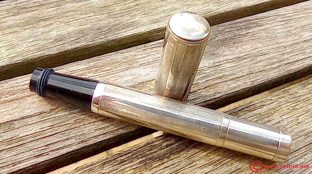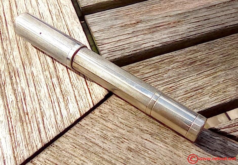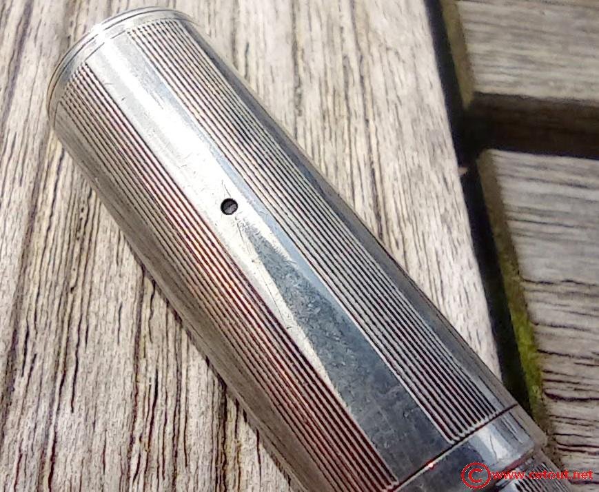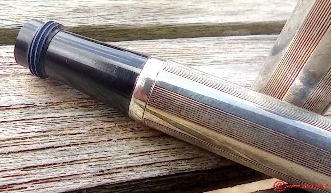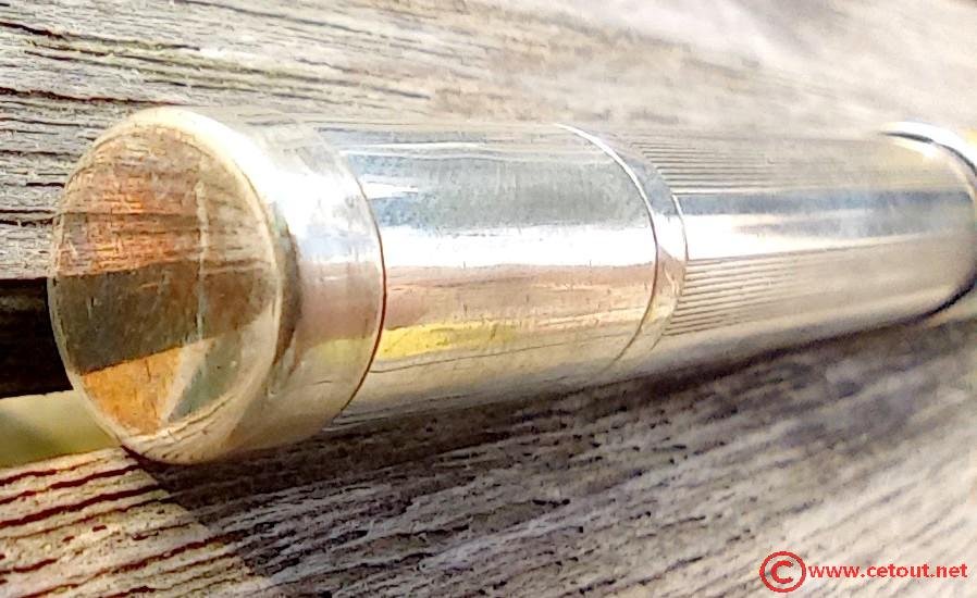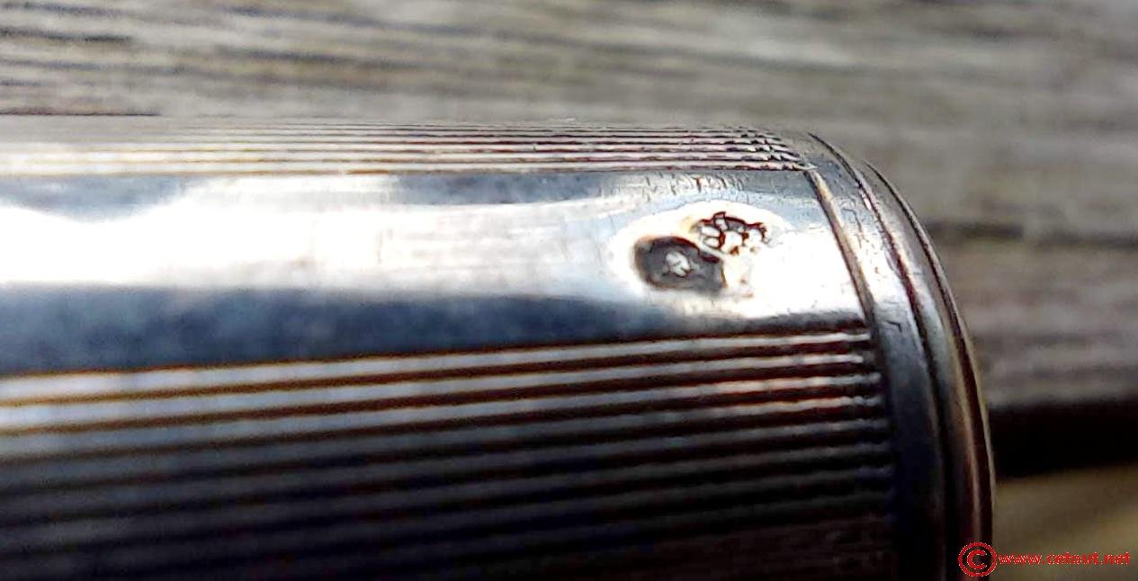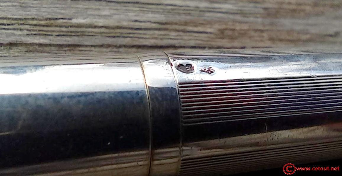 – Corps EBONITE noire avec habillage Métal ARGENT avec poinçons (crabe) . Bague ARGENT en extrémité (Système à molette)