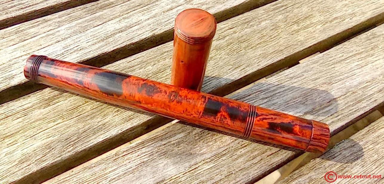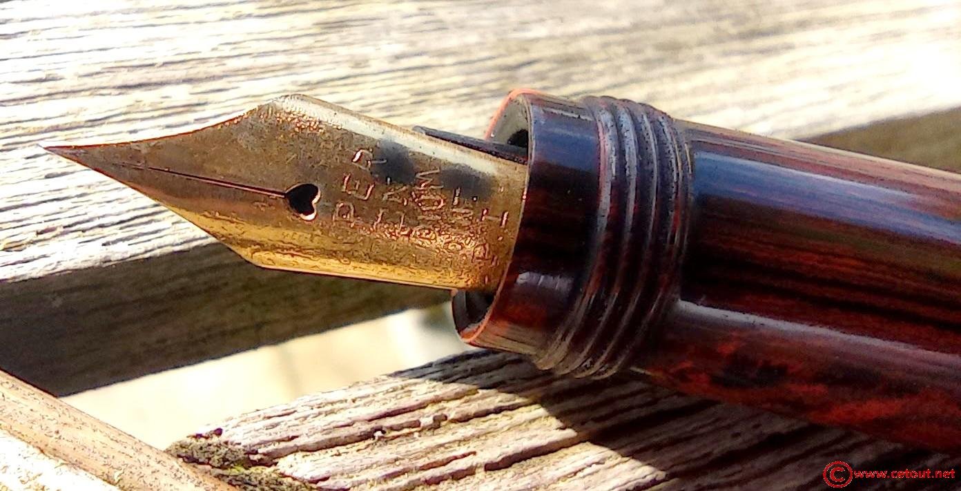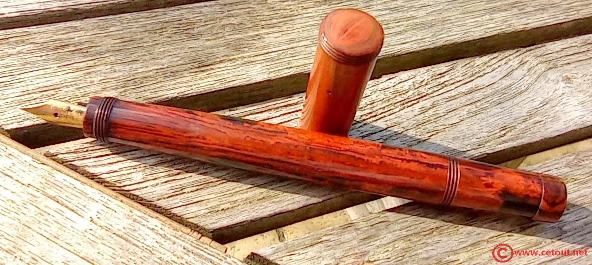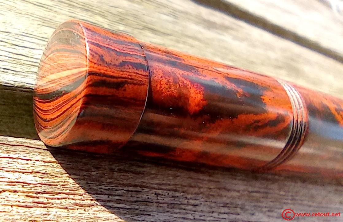 – Capuchon en Ébonite marbrée (Woodgrain). Très Bon état global.