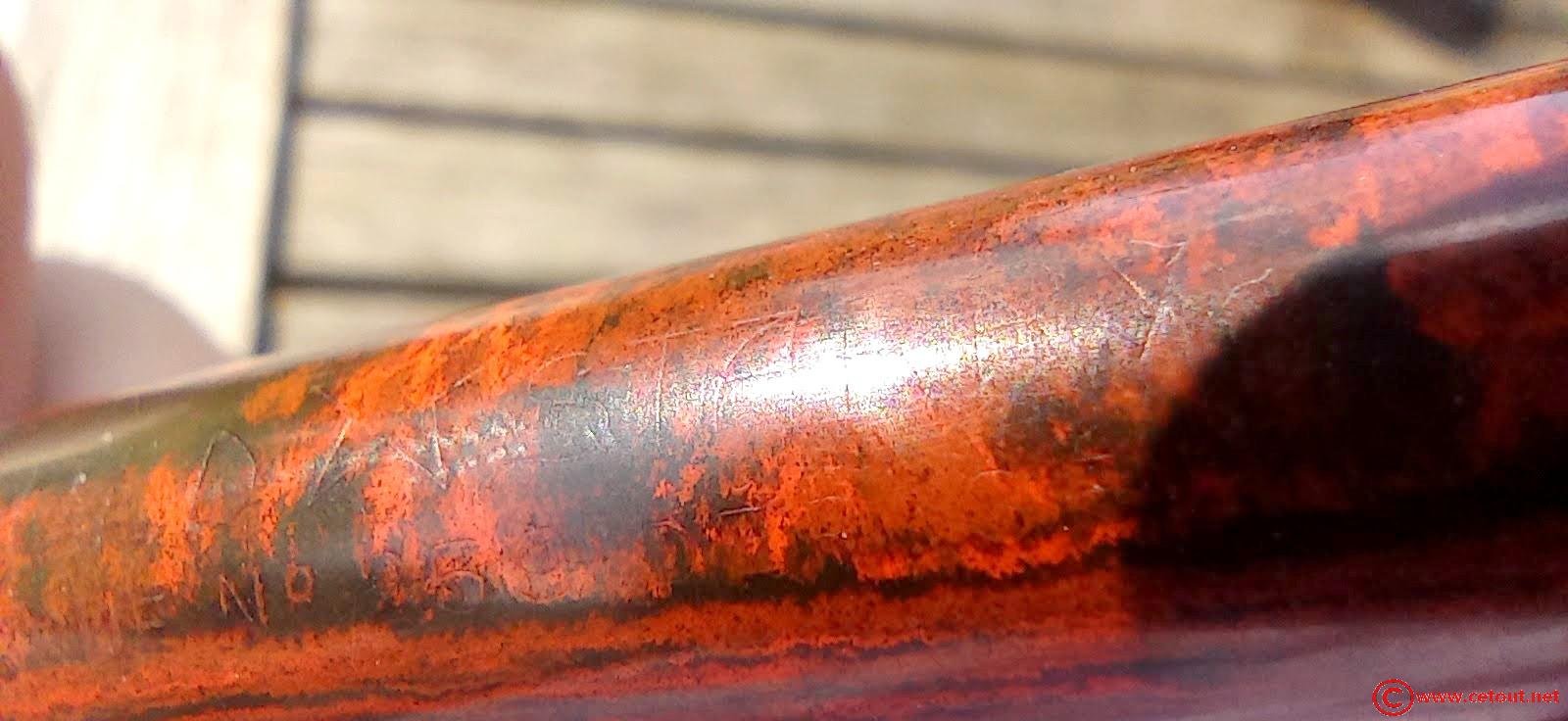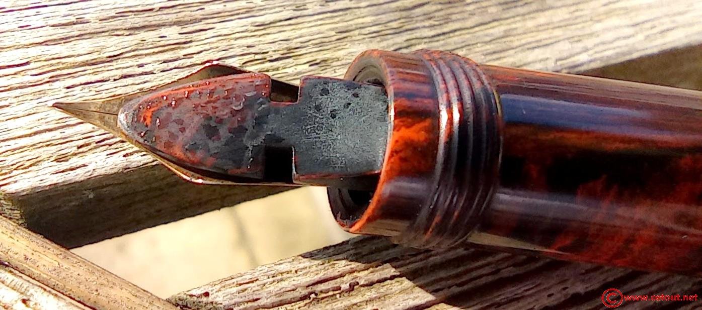 – Corps Ébonite marbrée (Woodgrain). Il est gravé dans le corps : « MANUFre FRANÇAISE » autour d’une étoile à 5 branches « GOLD » puis « STARRY » suivi en dessous de « MARQUE N° : 259 DÉPOSÉE ». Ces marquages sont difficiles à lire.