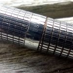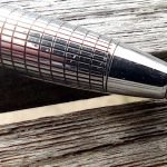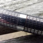 Stylo entièrement en métal chromé quadrillé.