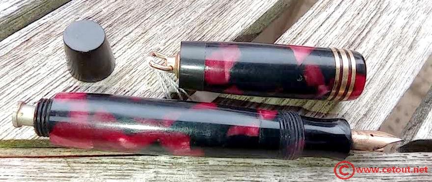 – Corps en celluloïd? marbré rouge et noir. (système encre par sac à bouton).