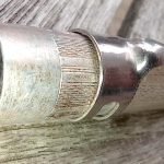 – Corps plastique (celluloïd ou ébonite?) noir recouvert d’un habillage métal avec motifs et guillochage . Aucune inscription.