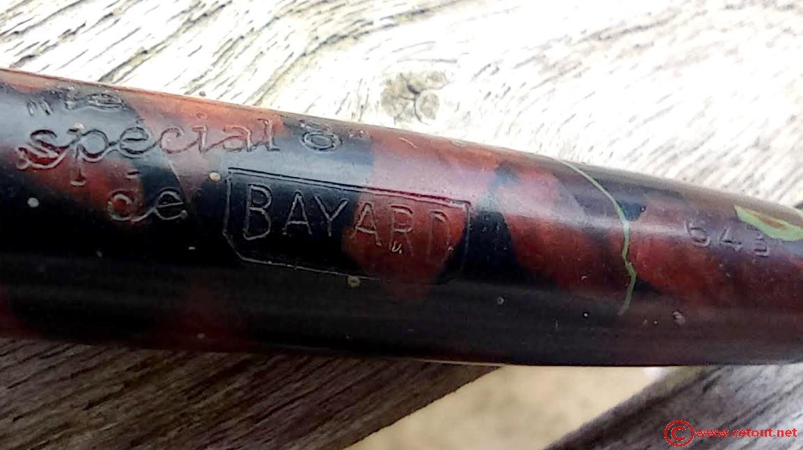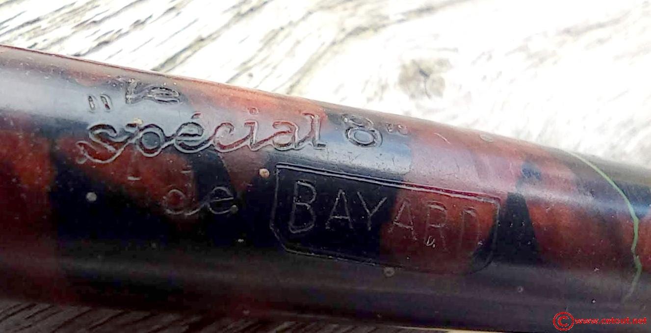 – Corps Celluloïd (?) marbré rouge et noir avec quelques zébrures vertes . Il est gravé dans la matière : « “LE SPECIAL 8” BAYARD » stylisé et N°643 gravé en bout de corps.