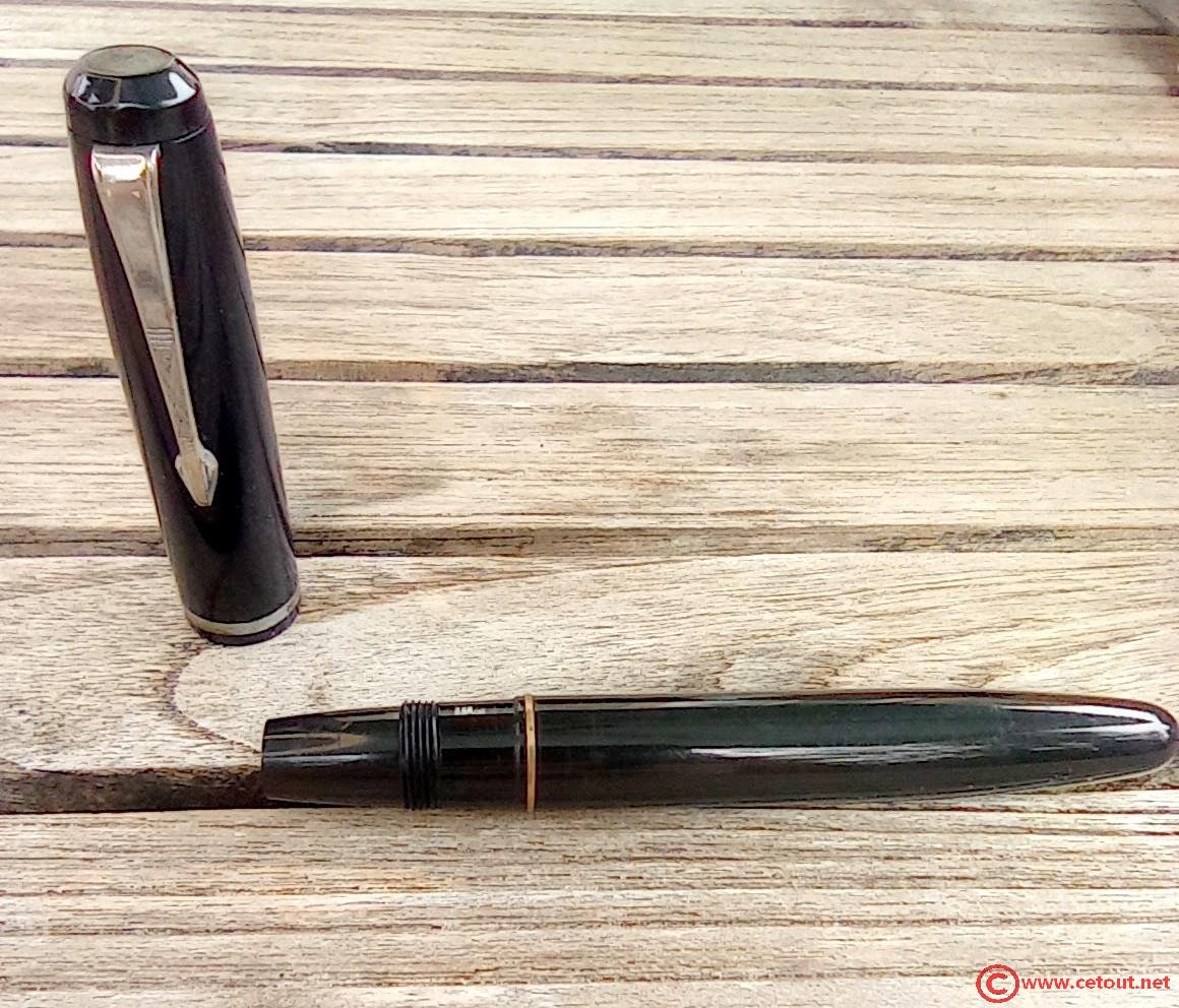 – Corps plastique (celluloïd?) noir . Il est gravé “MONARCH (i?) P”. Bague métal de séparation.