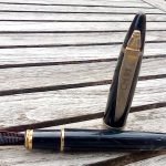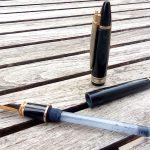 – Bloc plume Métal laqué noir . Une bague dorée termine la section.