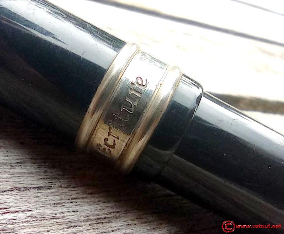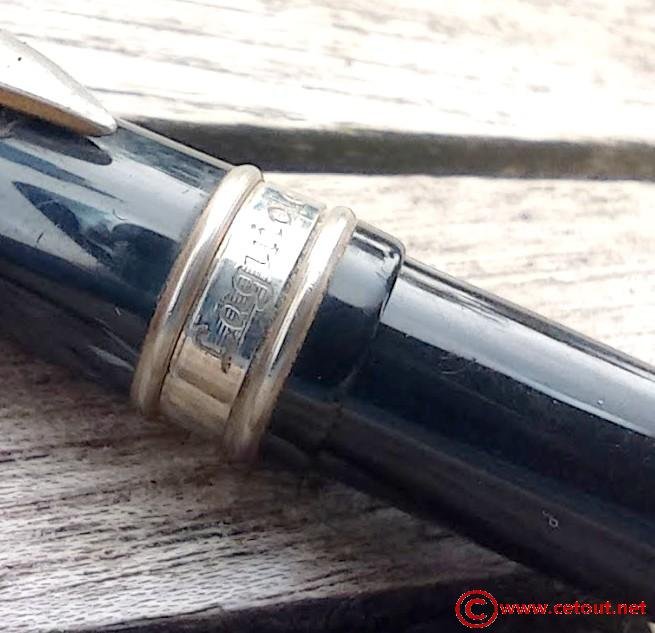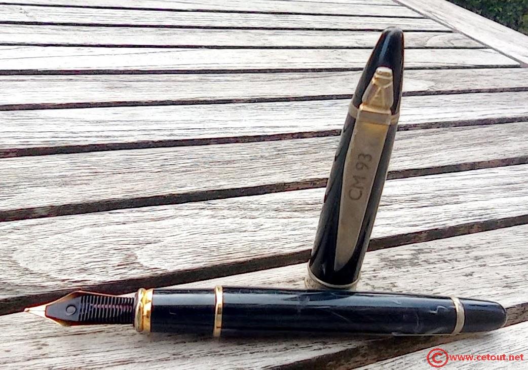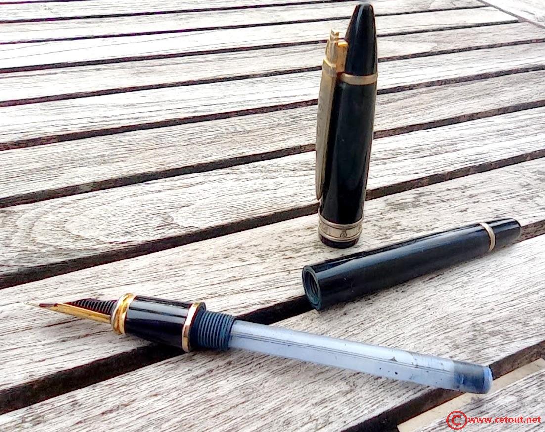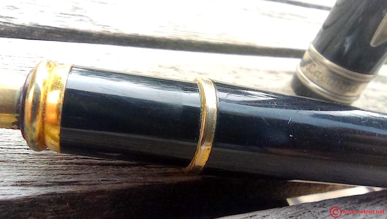 – Bloc plume Métal laqué noir . Une bague dorée termine la section.