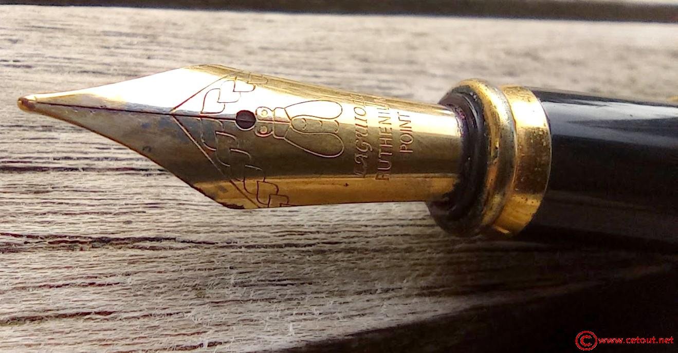 Plume originale LAGUIOLE avec logo abeille en métal doré un peu décoloré. Il est gravé : LAGUIOLE RUTHENIUM POINT