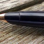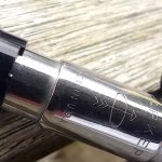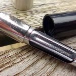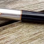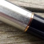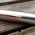 – Capuchon (intact) – métal brossé – agrafe flèche . Bague au sommet. Inscriptions : « Symbole flèche et cercle » suivi de « PARKER – MADE IN USA »