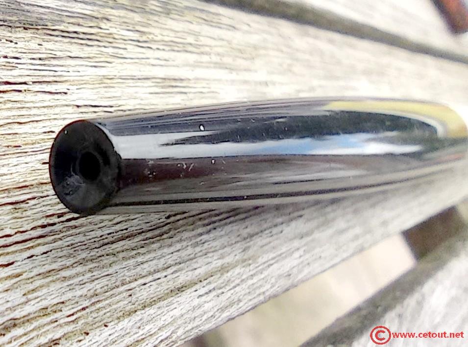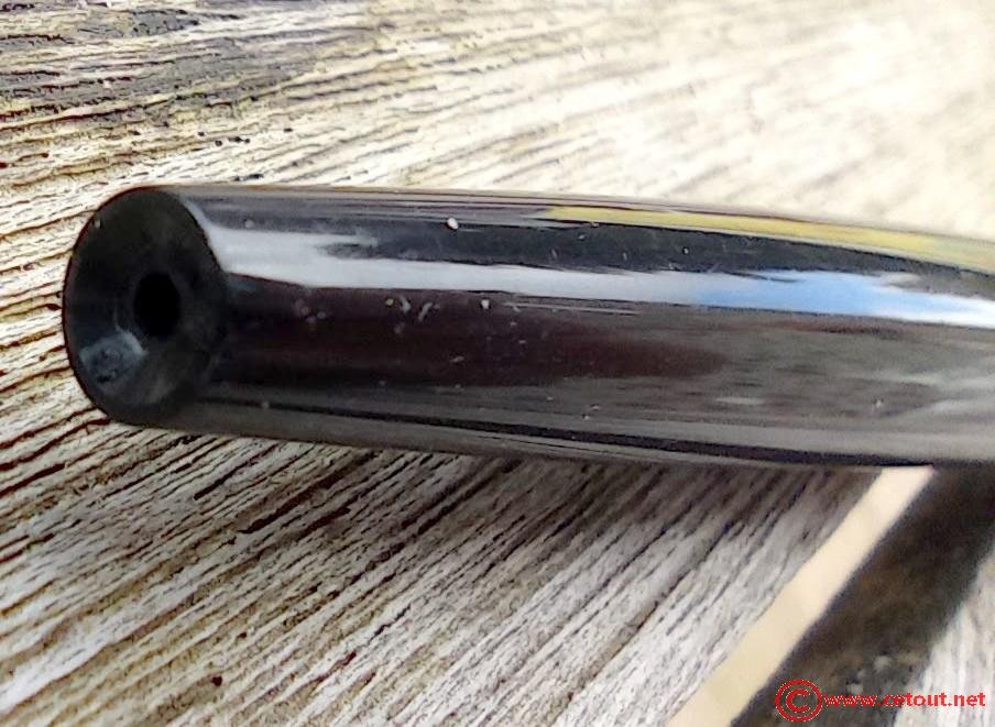 – Corps Plastique noir. Forme se terminant par un orifice dans une extrémité concave. Une bague métal sépare le corps du capuchon avec clip de maintien.