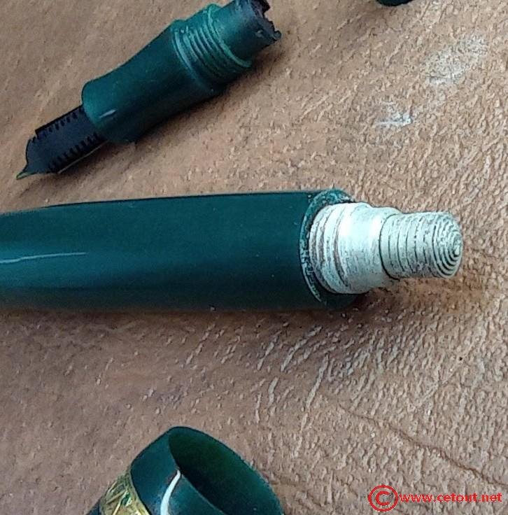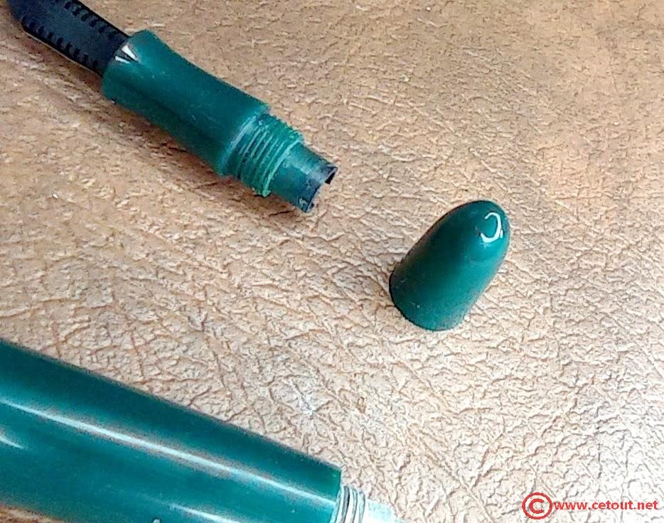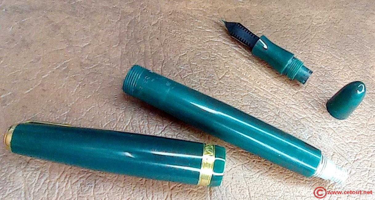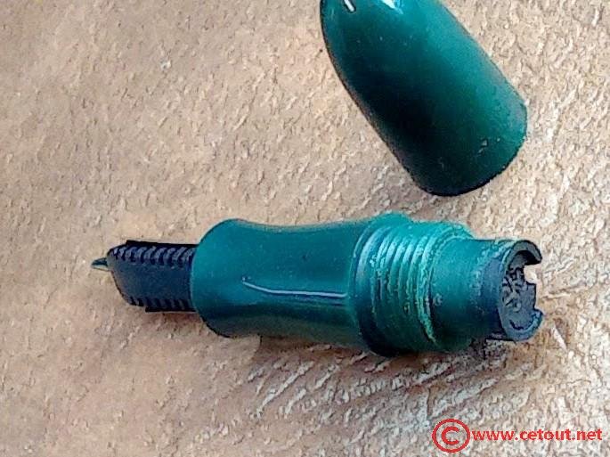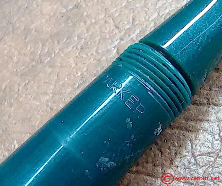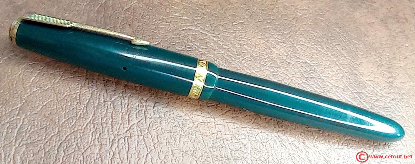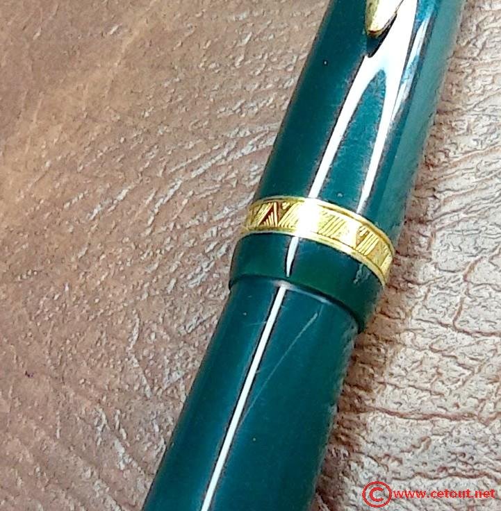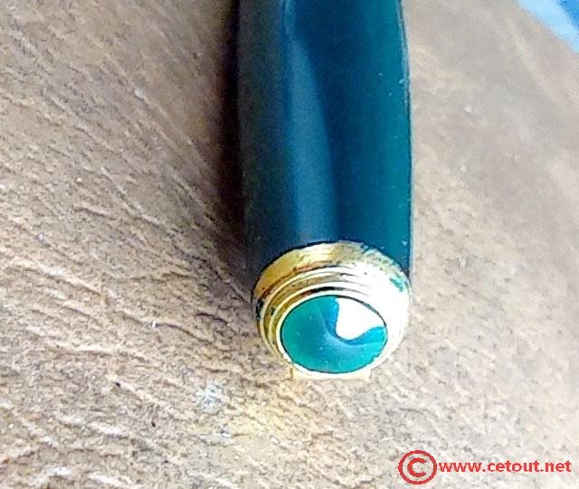 – Capuchon (intact) Plastique vert. Agrafe dorée Parker avec Jewel (années 40-50).