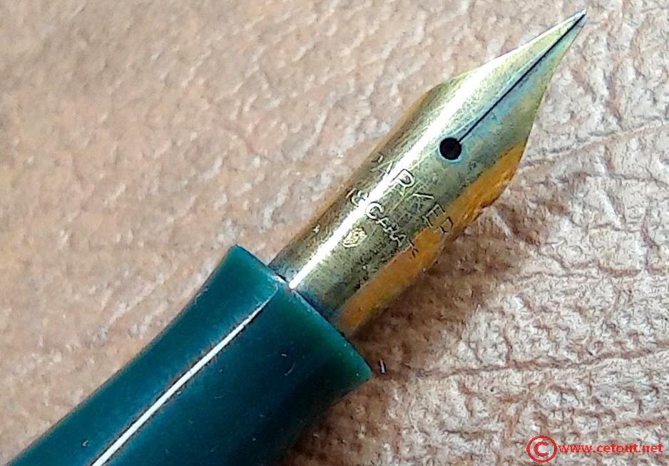 – Bloc plume plastique (noir). Plume dorée originale PARKER. Gravure “PARKER 18 Carats avec poinçon aigle).