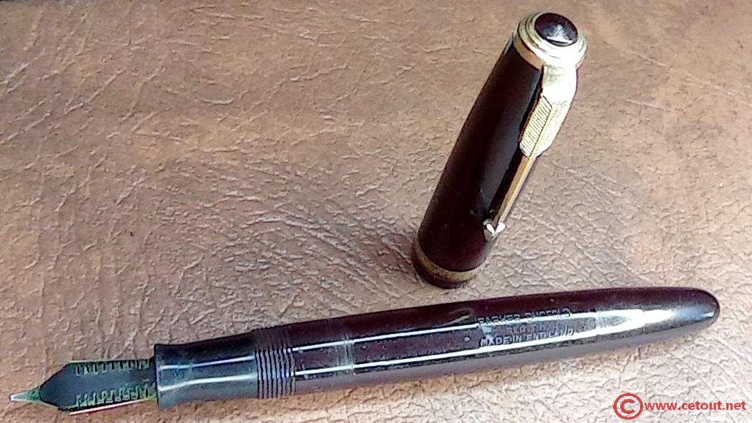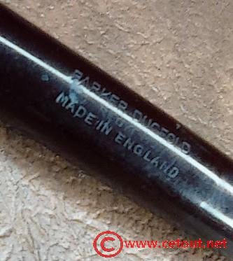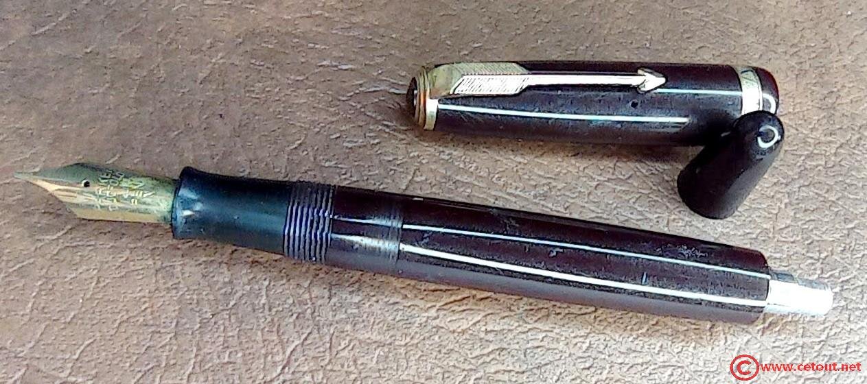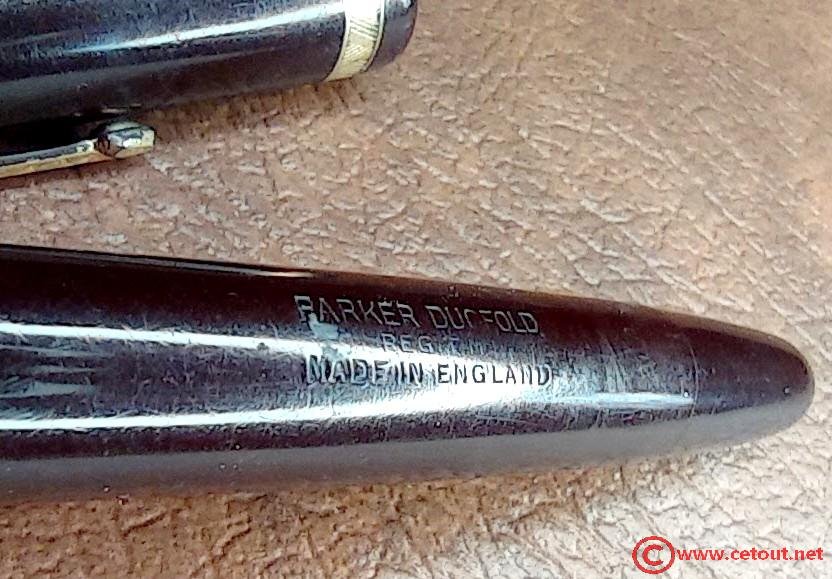– Corps Celluloïd Noir. Inscription « PARKER DUOFOLD REG. T.M. MADE IN ENGLAND »