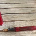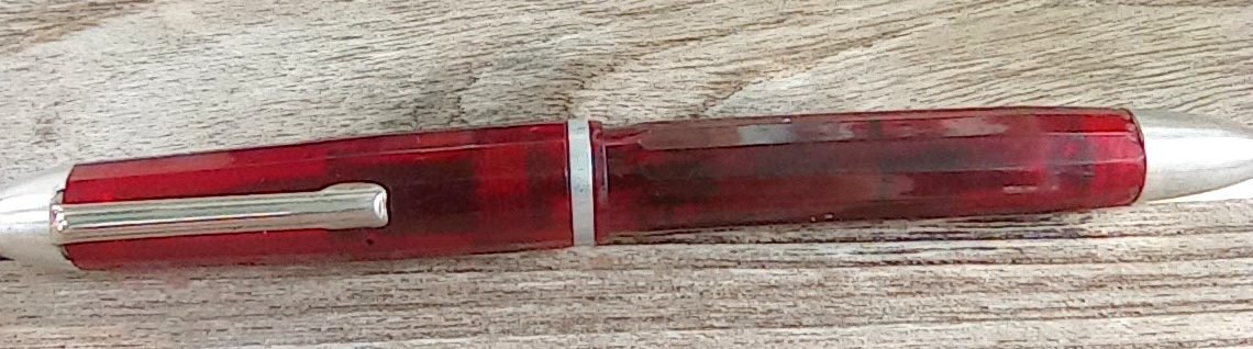 DANS SON JUS : STYLO PLUME INCONNU PLASTIQUE TRANSPARENT ROUGE ET ALUMINIUM – FRANCE?