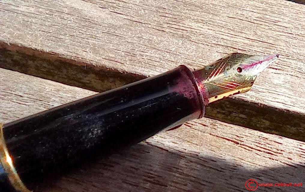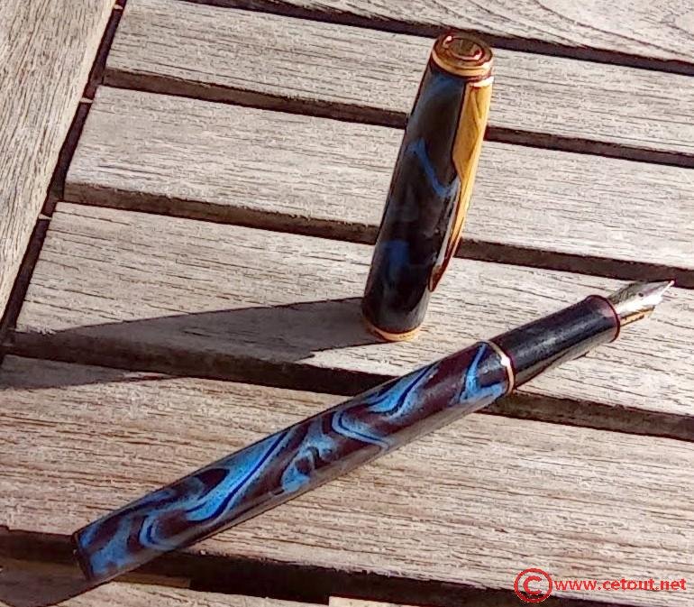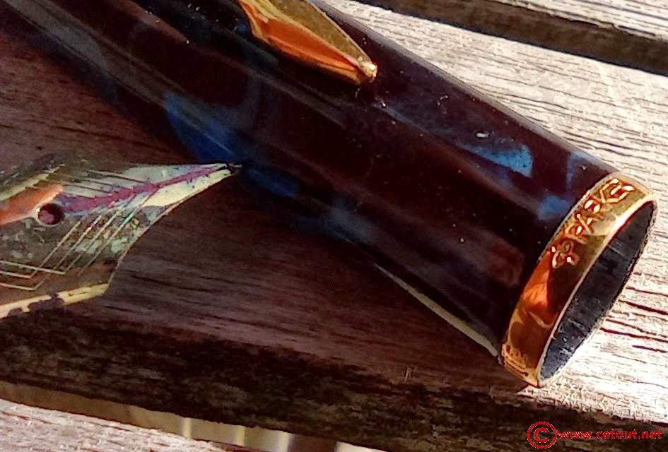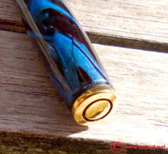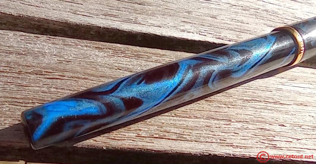 – Corps Laqué Marbré bleu. Pas d’inscription. Une bague dorée pour clip avec capuchon.