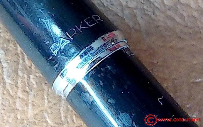 – Capuchon (intact) – Plastique noir – agrafe flèche . Bague au sommet. Inscriptions : « PARKER»
