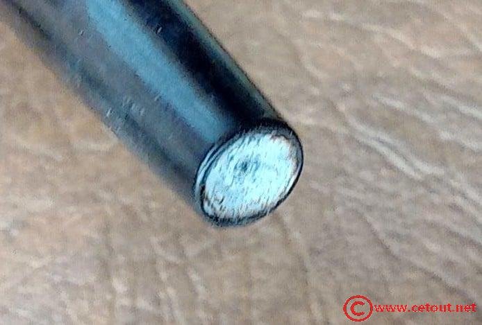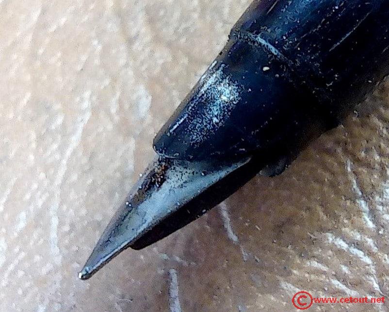 – Corps Plastique noir – Quelques traces à nettoyer en bout de corps. Forme se terminant par un orifice dans une extrémité concave (a nettoyer). Une bague métal sépare le corps du capuchon avec clip de maintien.