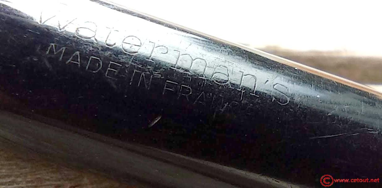 – Corps Celluloïd Noir. Il est gravé dans la résine : « WATERMAN’S suivi de MADE IN FRANCE ».