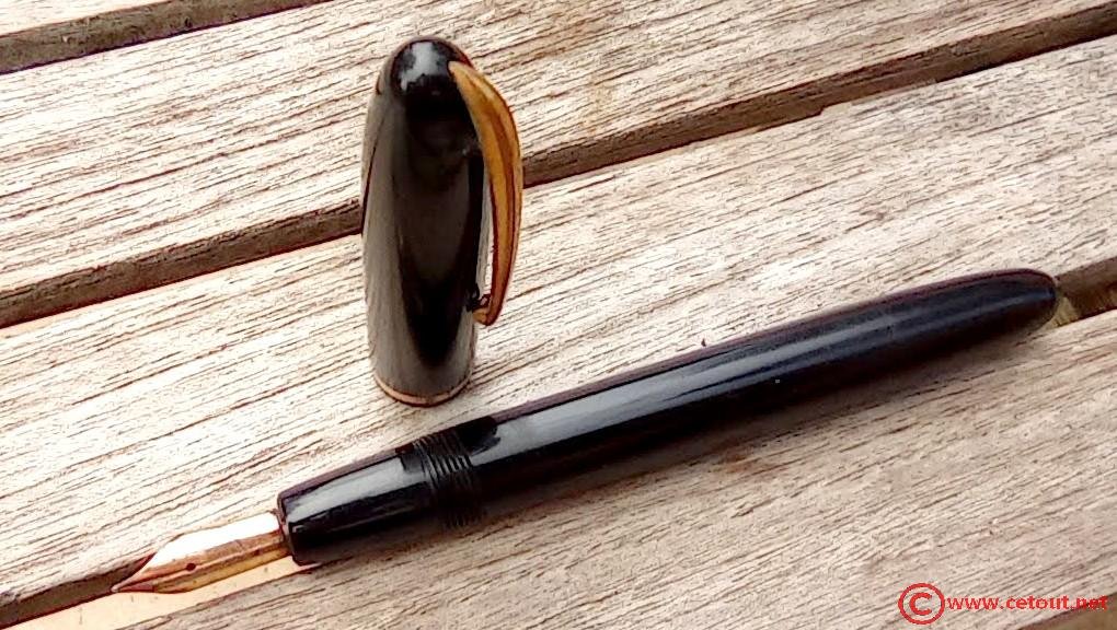 – Bloc plume Celluloïd Noir. Plume métal avec comme inscription :