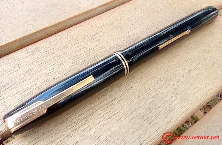 – Bloc plume Celluloïd Noir. Plume dorée avec comme inscription :