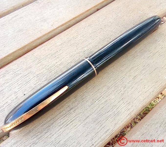 – Bloc plume Celluloïd Noir. Plume dorée avec comme inscription :