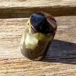 Corps : CELLULOID marbré vert-noir. Mécanisme à pompe à piston (bouton rotatif caché par un capot de même matière que le corps). Fonctionnement à voir.