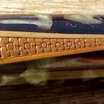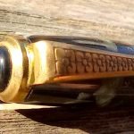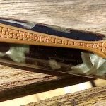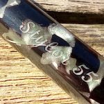 Bloc section CELLULOID (ou ébonite) Noire . Plume métal “Iridium + tête d’animal (tigre?)+écriture TI..ED”.