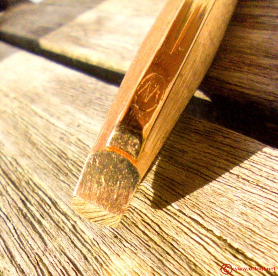 – Corps métal avec rayures plaqué or (poinçon). TBE. Traces d’usure normales. Une bague dorée en extrémité.