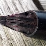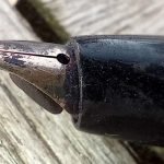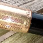 – Bloc plume résine noire. Plume dorée très probablement d’origine WATERMAN carénée.