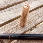 – Corps résine noire. Une bague métallique dorée sert de clip de fermeture..