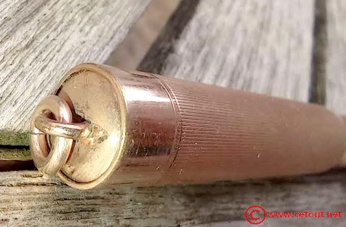 – Corps ébonite noire recouverte d’un habillage métal plaqué Or. Système à levier (fonctionnel (sac à changer)). Pas d’inscriptions. Cannelures fines sur la longueur du corps avec une partie lisse à chaque extrémité de l’habillage.