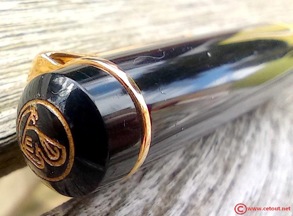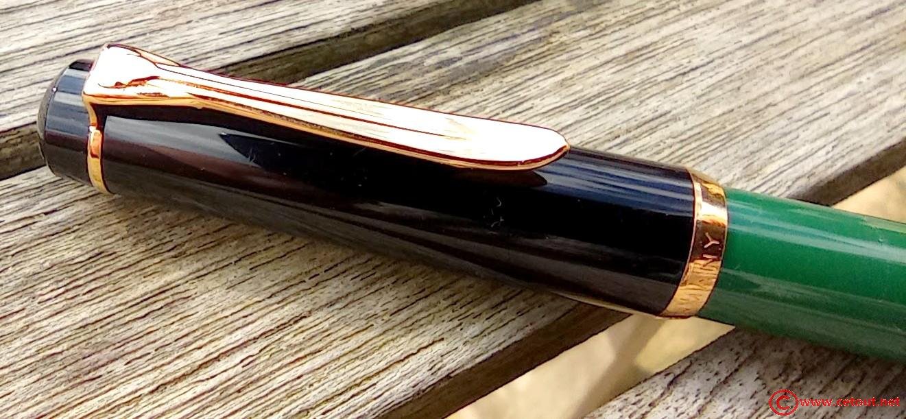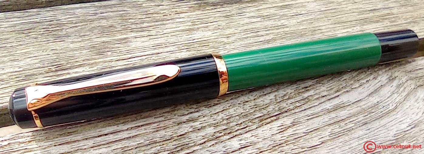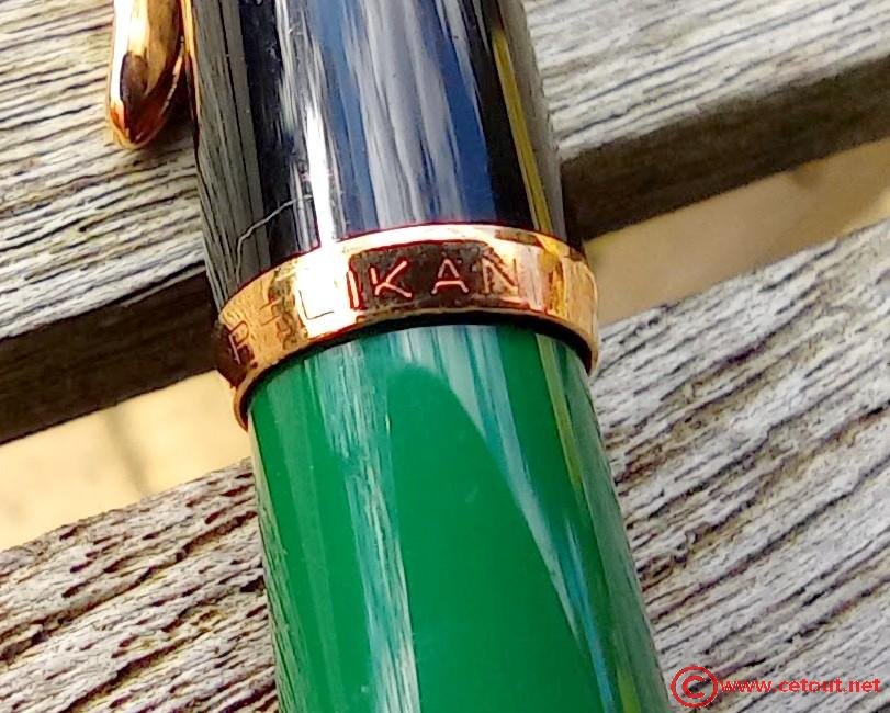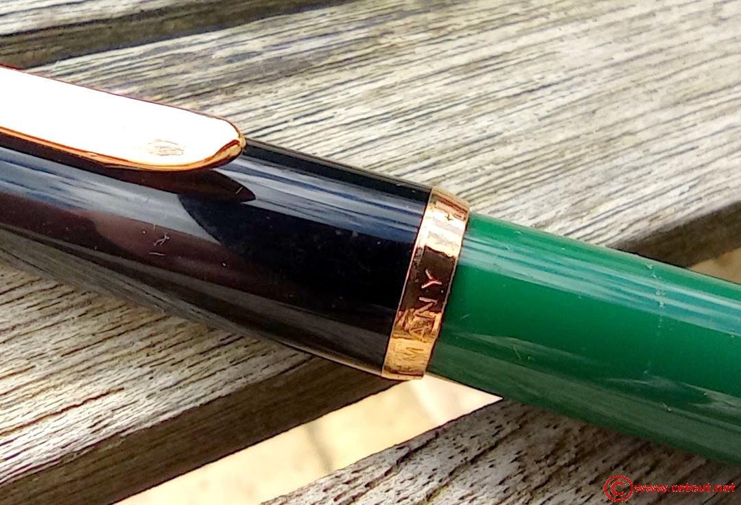 Base du capuchon avec 1 anneau Métal doré (incurvé). Inscription : « PELIKAN – GERMANY»