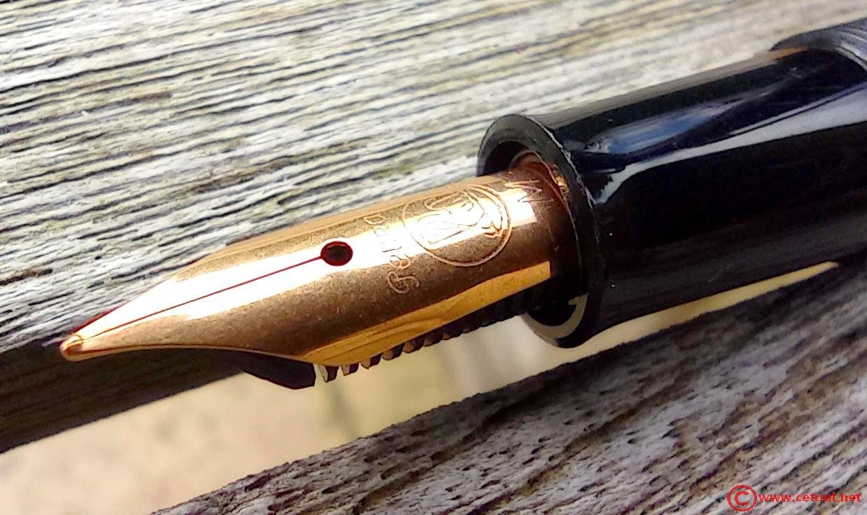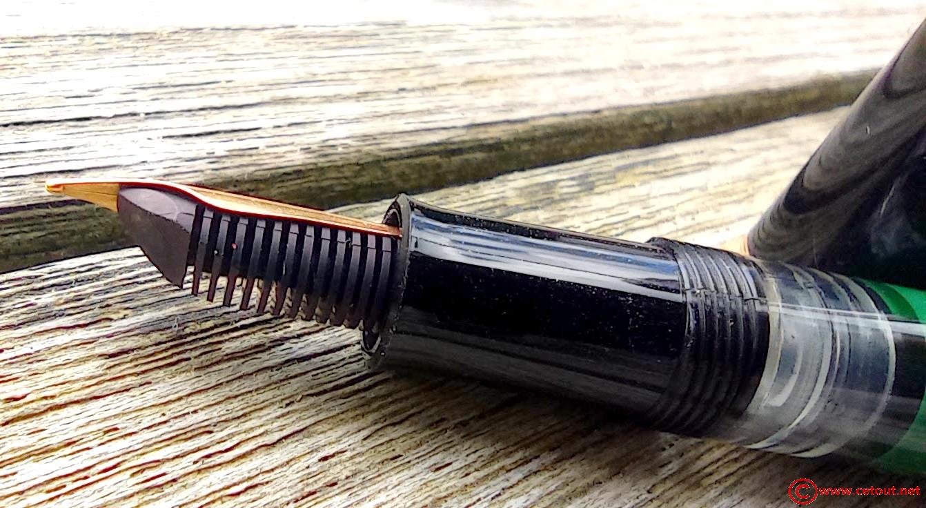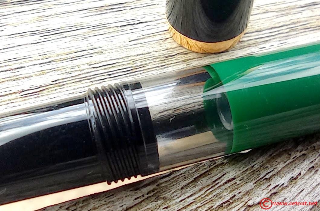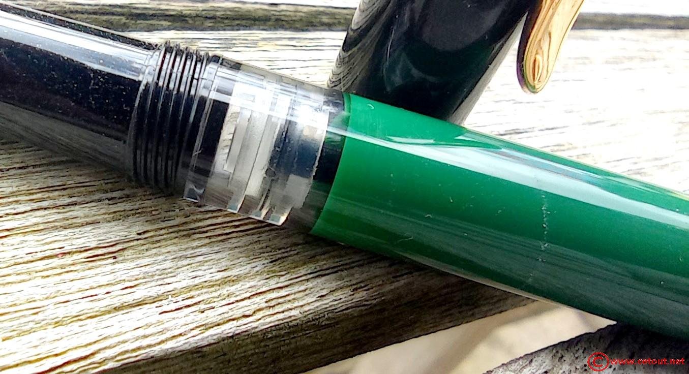 Base du capuchon avec 1 anneau Métal doré (incurvé). Inscription : « PELIKAN – GERMANY»