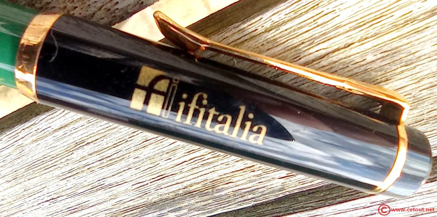 Insigne PELIKAN en doré sans usure au sommet du bouchon du capuchon. Marque avec logo (IFITALIA?) estampée sur le côté du capuchon…