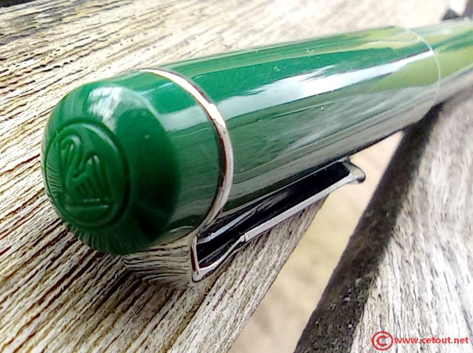Insigne PELIKAN en vert sans usure au sommet du bouchon du capuchon.