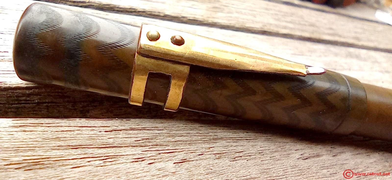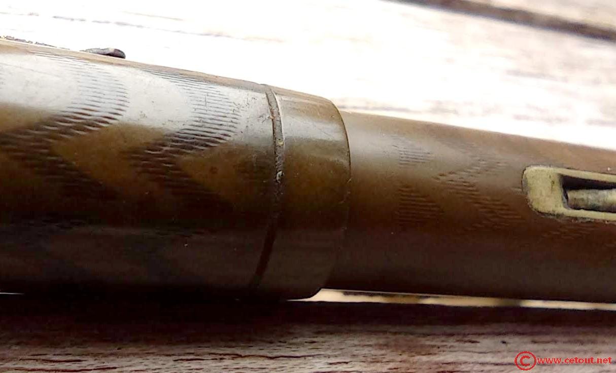 – Capuchon en Ébonite noire décolorée avec motifs chevrons. Bon état global.