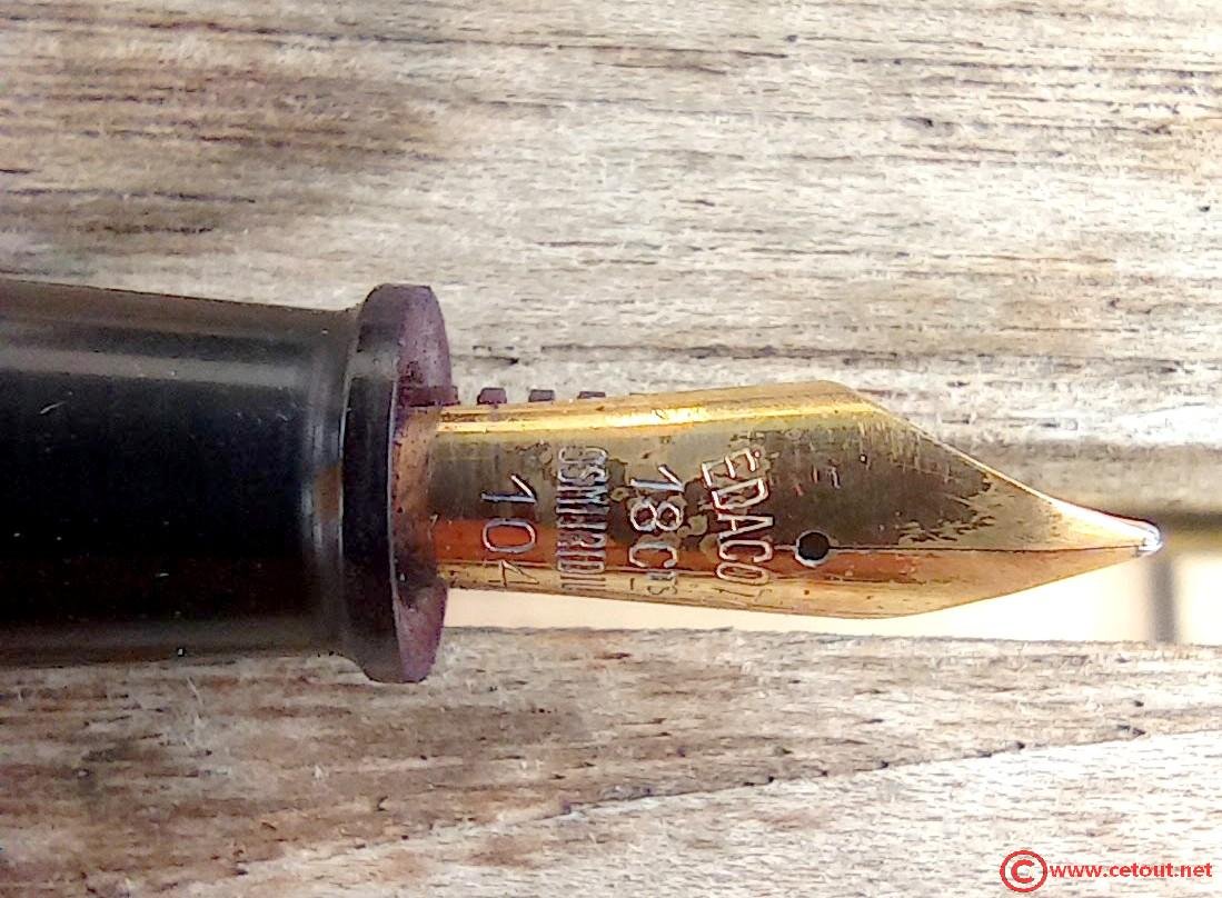 Plume or. Inscriptions :  “EDACOTO 18cts osmiridium 104”.