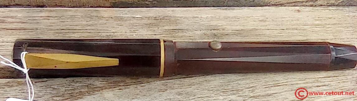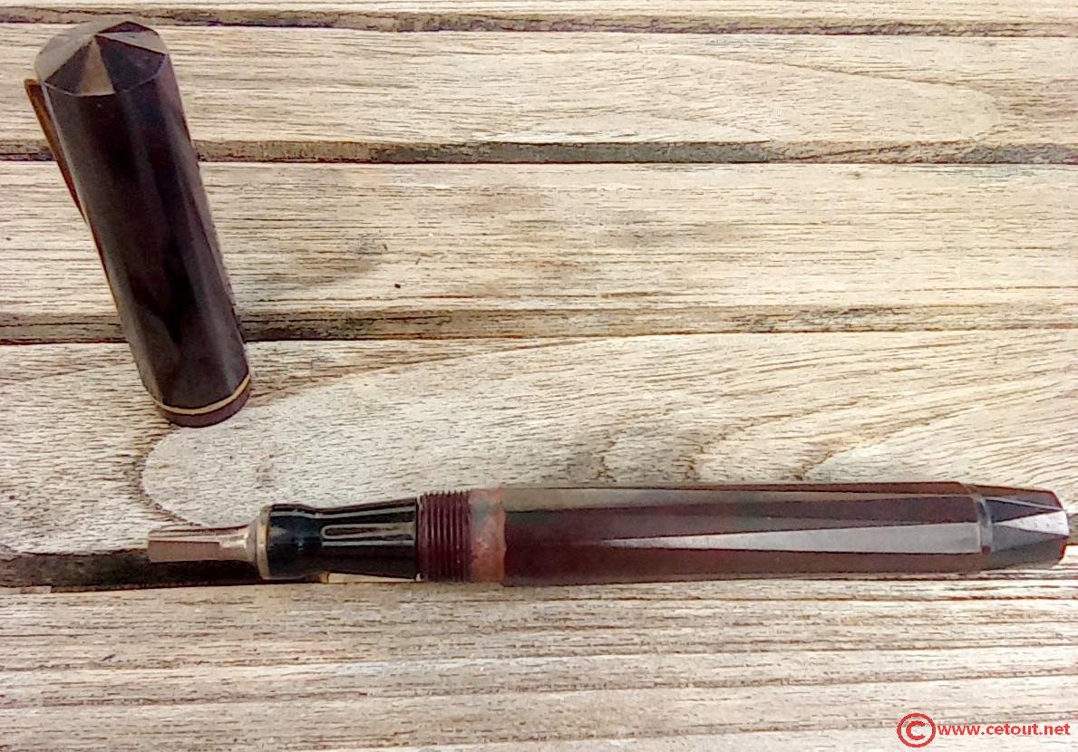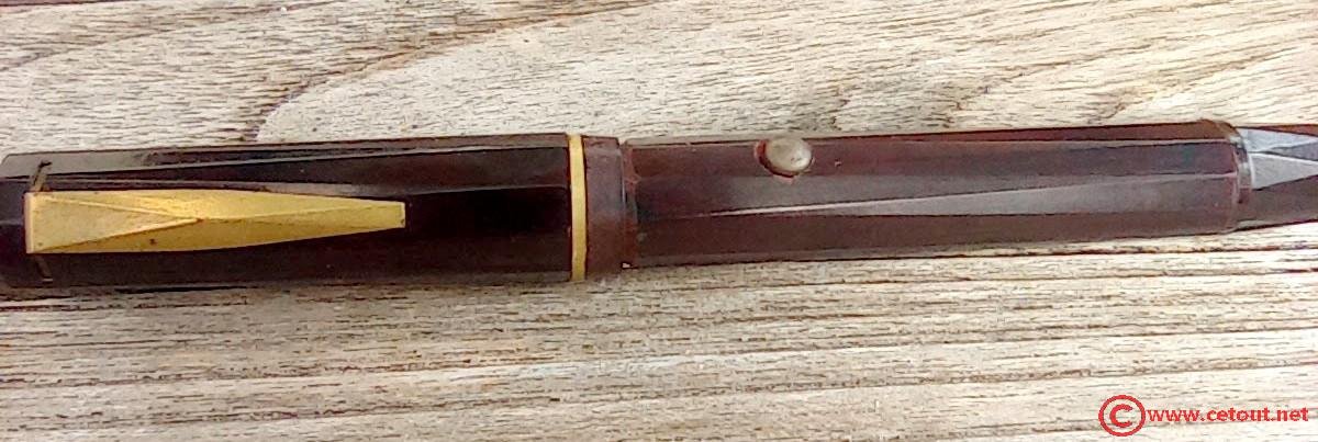 - capuchon rouge façon bakélite avec 1 bague métal doré à la base (bon état). Clip métal doré.