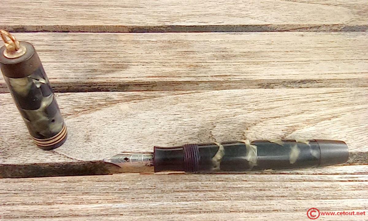 – Corps en celluloïd? marbré vert nacré et noir. (système encre par sac pression à bouton).