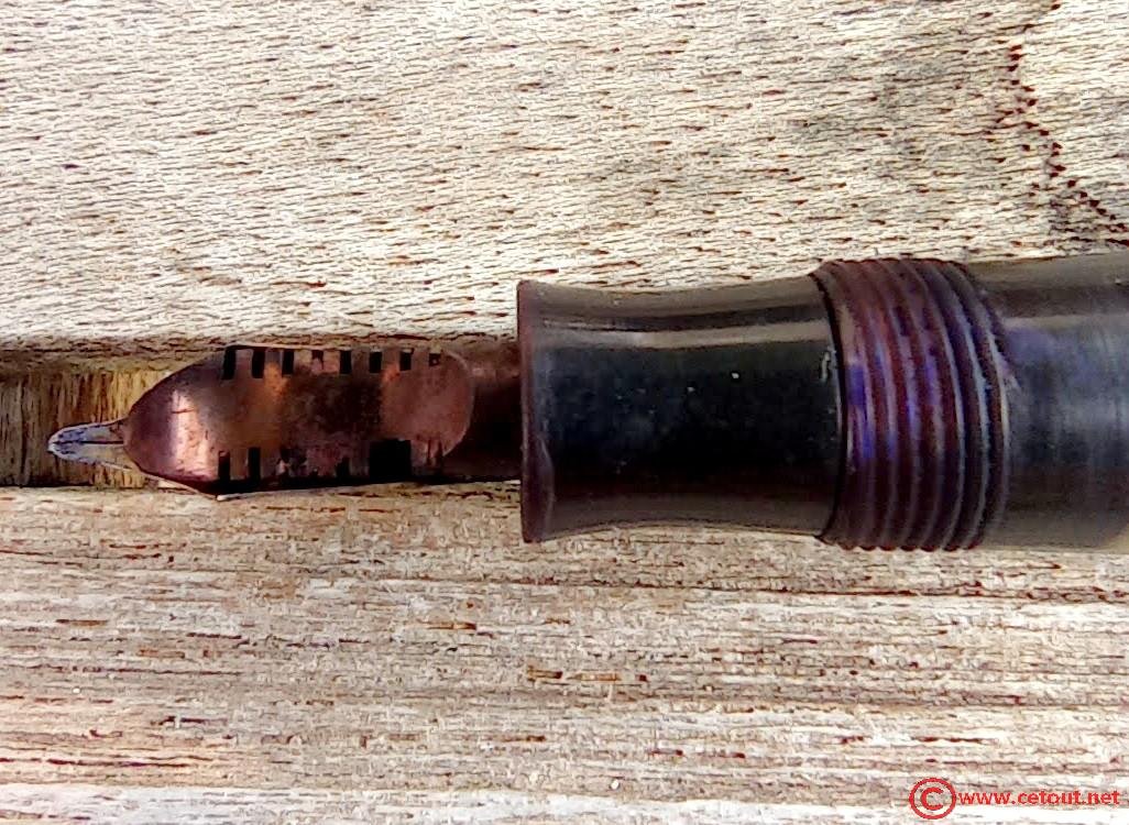 – Plume métal décoloré. Inscriptions : “P&C num 13 FABon (reste caché)”.