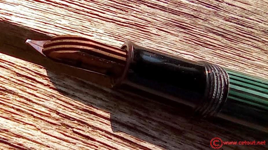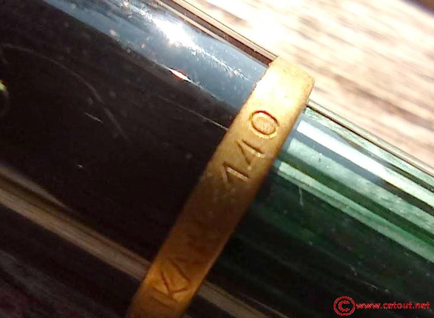 Base du capuchon avec 1 anneau doré. Inscription : « PELIKAN 140 GERMANY»