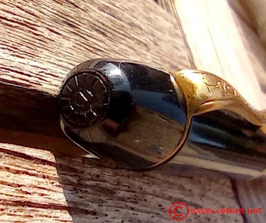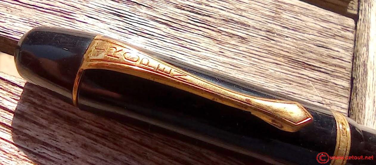 - Capuchon (intact) résine noire, clip métal doré. Gravure « TROPEN » sur le clip. Gravure sur le sommet du capuchon. Bague dorée à la base du capuchon.