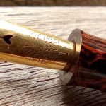 Capuchon : Ebonite marbrée Woodgrain. Encoche à la base.