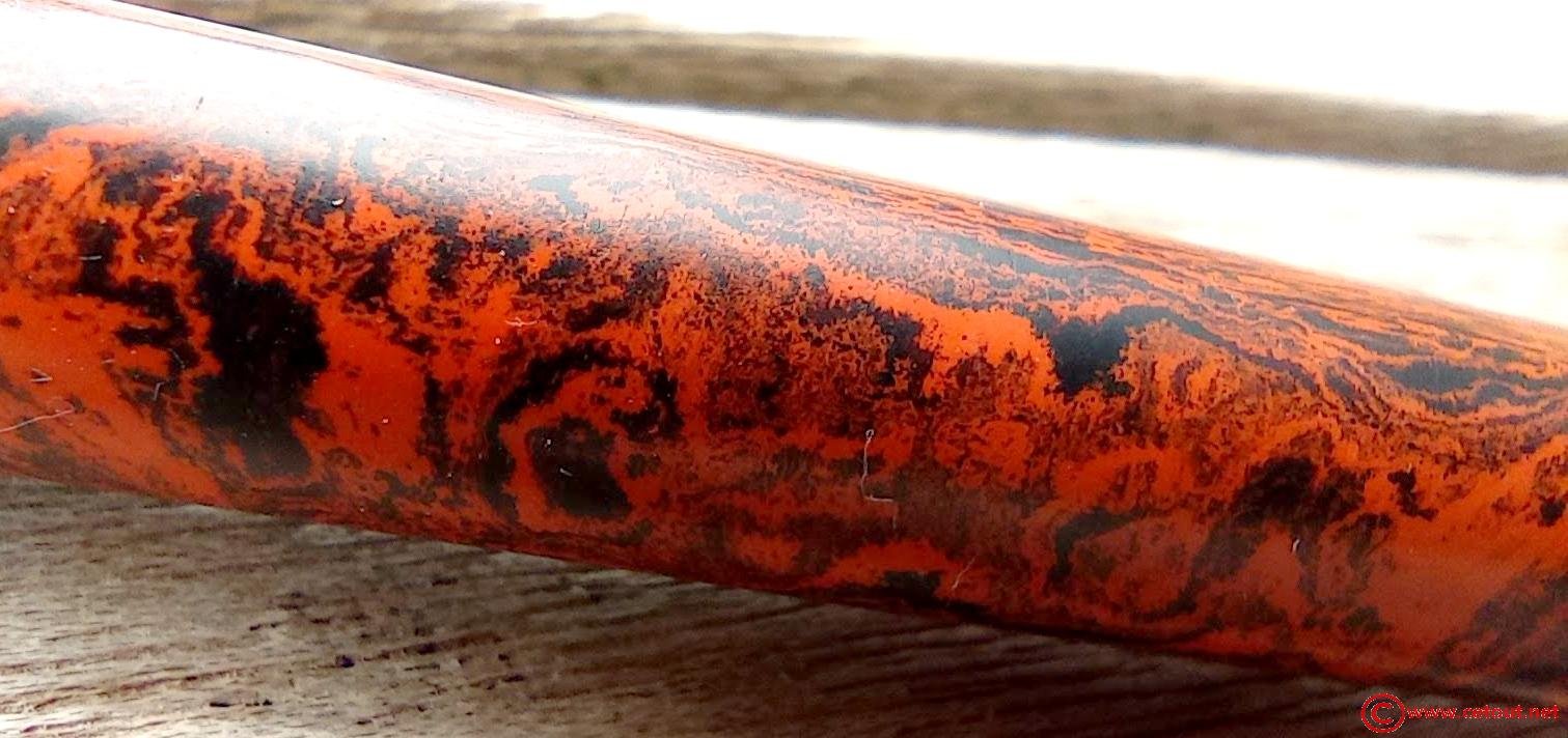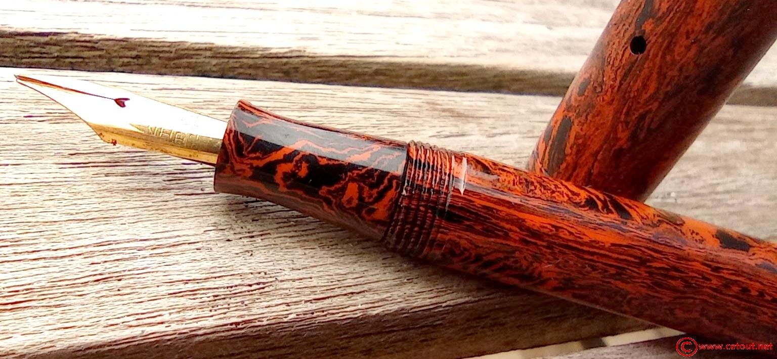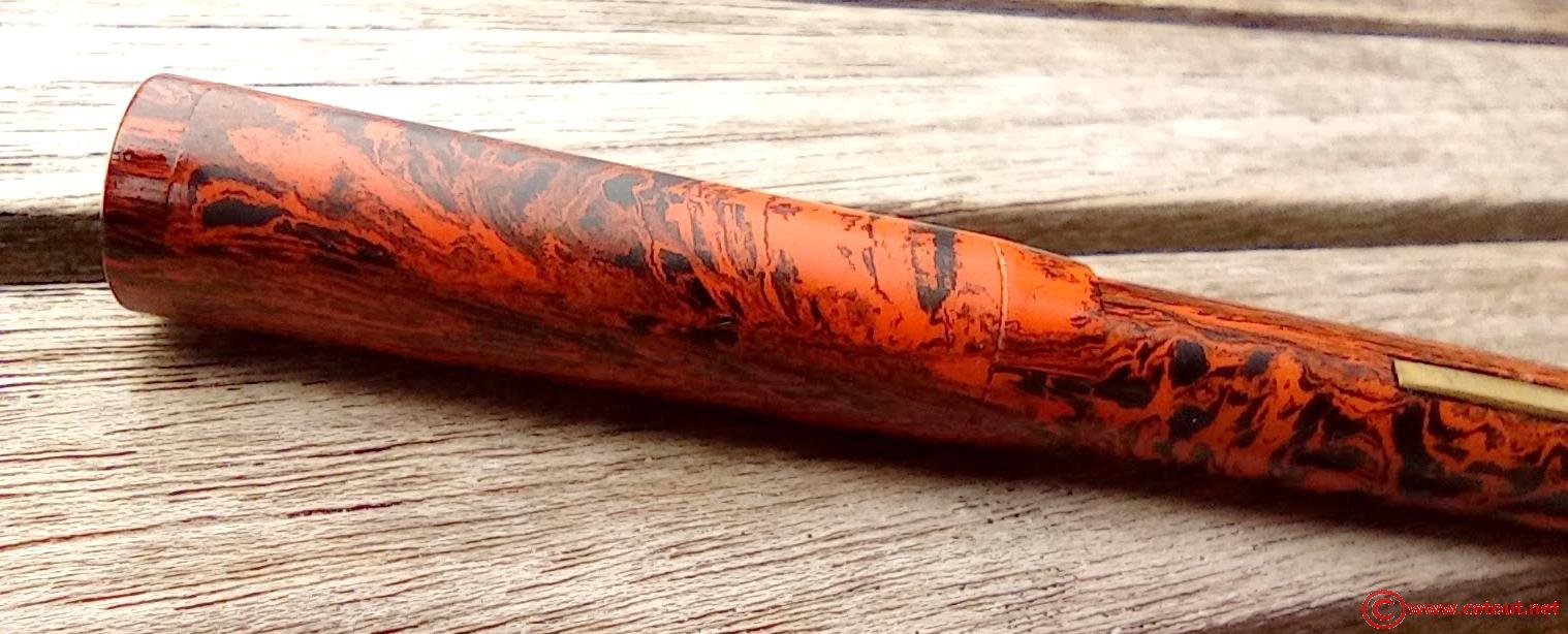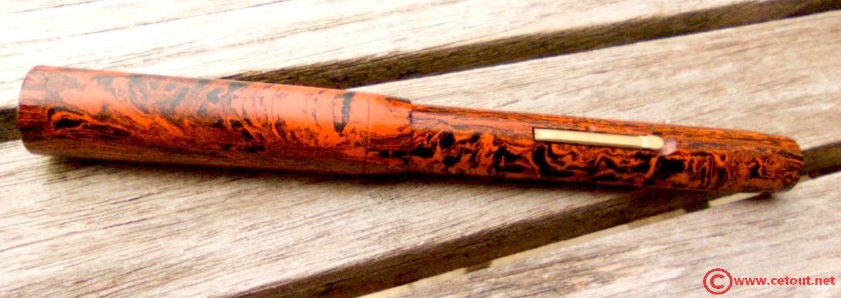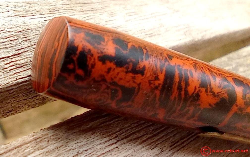 Capuchon : Ebonite marbrée Woodgrain. Encoche à la base.