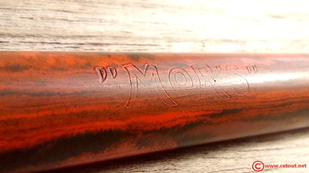 – Corps Ebonite marbrée (woodgrain). Gravure “MOR’S” .